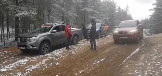 Testa dalībniekiem nākas secināt, ka piedziņa ir svarīga, taču ne mazāk svarīgu lomu spēlē arī riepu izvēle, tieši tāpēc ar savādākām riepām aprīkotajam Toyota Hilux neizdodas tik tālu tikt kā Mitsubishi un Nissan pikapiem.