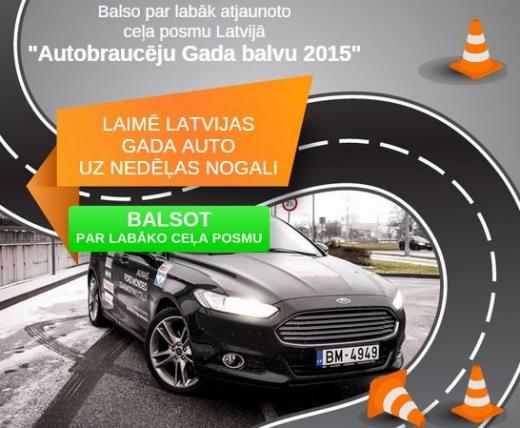Piedalies balsojumā par vienu no 10 atjaunotajiem ceļa posmiem Latvijā un laimē "Latvijas Gada auto 2015" "Ford Mondeo" uz nedēļas nogali ar pilnu bāku!