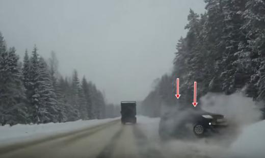 Vieglās automašīnas šoferis uzsāk apdzīšanu, taču zaudē kontroli pār savu spēkratu un finišē sniega valnī.