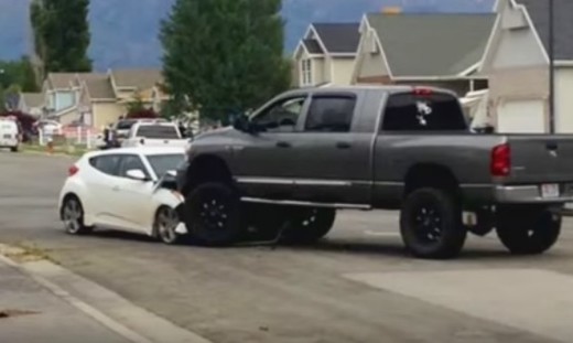 ASV pikapa vadītājs izbrauc priekšā Hyundai, lai pārtrauktu to stūrējošā tīņa trakošanu (+ video)
