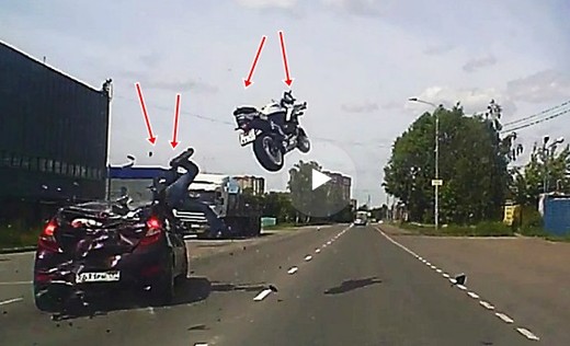 Žanra klasika - ātri braucošs motociklists veic apdzīšanu un uztriecas automašīnai, kas griežas pa kreisi, lai apstātos stāvvietā (no 2.00).