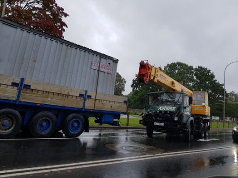 Avārija Majoros - autoceltnis ietriecas tās pašas firmas kravas mašīnā (+ foto)