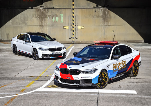 BMW oficiāli prezentējis M5 sedana modifikāciju, kas tiks izmantota kā drošības mašīna Moto GP sacensībās. Kopā ar Moto GP Safety Car ražotājs izrāda jaudīgajam sedanam izstrādāto M Performance aksesuāru komplektu, ko varēs pasūtīt pie BMW dīleriem.