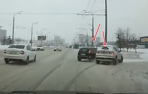 Video autors uzskata, ka BMW vadītājs pie baltā krosovera stūres neievēroja distanci.
