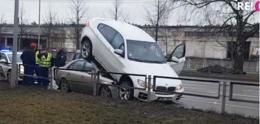 “BMW” zādzība beidzas uz cita auto jumta (+ VIDEO)