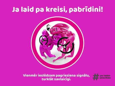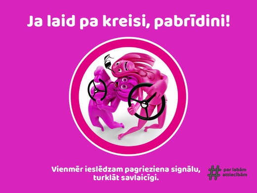 • laicīga pagrieziena signāla rādīšana jeb “Ja laid pa kreisi, pabrīdini!”,