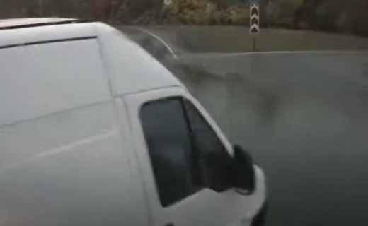 Izbraucot no apļa, Fiat Ducato aizšķērso ceļu kravas auto, jo busiņa vadītājs bija pārliecināts, ka viņam ir galvenais ceļš.