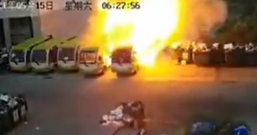 Ķīnas pilsētā Baise bez redzama iemesla aizdedzies elektriskās piedziņas autobuss. Liesmas ātri pārmetās uz citiem spēkratiem, kas bija novietoti blakus.