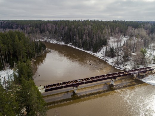 Fotoreportāža: Tiltam pār Gauju pie Rāmniekiem uzbīdītas jaunas laiduma sijas (+ FOTO)