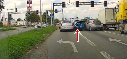Gaismu un skaņu signāli nelīdz - policijas auto Polijā saskrienas ar trim citiem (+ VIDEO)