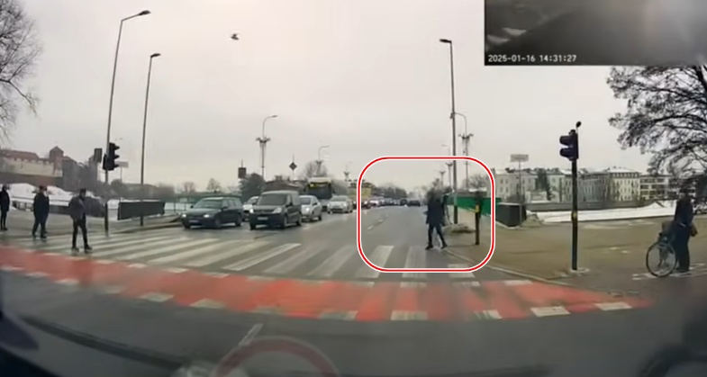 Komentārā teikts, ka izejot uz pārejas, gājējs liek nobremzēt vieglajam automobilim, kuram no aizmugures uztriecas autobuss ar 34 bērniem salonā.