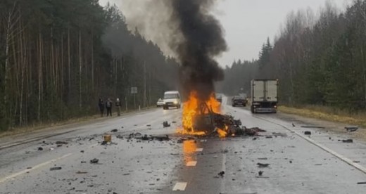 Škoda Felicia vadītājs Krievijā nezināmu iemeslu dēļ iebrauc pretējā joslā un saduras ar kravas auto, kas novirzās no kursa un taranē autobusa pieturu.