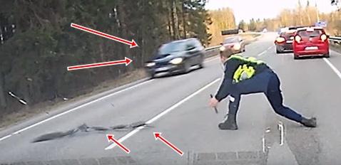 Igauņu policists efektīvā manierē apstādina narkomāna auto (+ video)