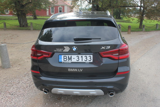Jaunais X3 kļuvis vēl nopietnāks ar izteiktākiem "vaibstiem" , pateicoties gaisa atverēm un radiatora restēm. Iespaidīgās radiatora restes un efektīgie lukturi izceļ auto priekšgalu, kas raksturo markas jaunās paaudzes "arhitektūru". Trīs līnijas sānu plaknē, durvju rokturu līmenī, durvju apakšdaļā un izceltais slieksnis akcentē gan klasiskās pludlīnijas, gan kopā ar priekšdaļās dizainu arī spēkrata sportiskumu. Sānu dizaina formas pārņem auto aizmugurējā daļa. Papildus efektu piešķir iespaidīgie lukturi. Jaunais bavārietis izdevies diezgan sabalansēts un pārdomāts. Viennozīmīgi auto izskatu nopietni ietekmēuzstādītie riteņu diski. Testējamajam auto bija "uzvilkti" 20 collīgi "zābaciņi". Izskatījās tīri labi, bet ar to prieki arī beidzas. Latvijas ielāpainajiem ceļiem tas nav labākais variants. To apliecinas katrs komforta lietpratējs.