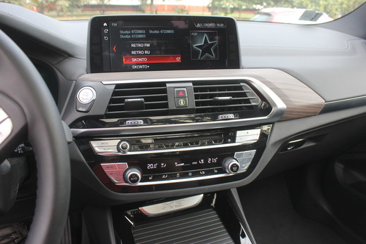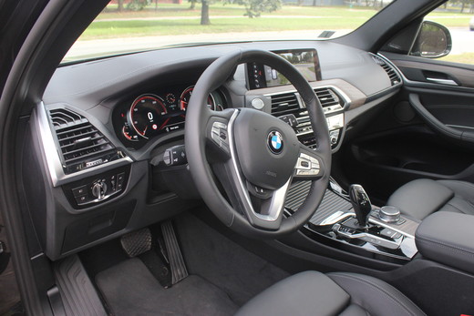 X3 salons ieturēts markas garā. To varētu raksturot vairāk kā elegantu ne avangardisku. Ir atpazīstamai citos modeļõs izmantotie risinājumi. Centrā liels multimēdiju ekrāns, kas labi saderas ar ventilācijas atverēm un aktuālo funkciju vadības bloku. Šis slēdžu un pogu bloks ar visām ventilācijas lūkām kā jau bavāriešu stilā mazliet iegriezts pret vadītāju. Multimēdiju ekrānā, ko varētu saukt par mazo televizoru, kurā var skatīties dokumentālo filmu "Dzīve ap manu auto", kā arī atrast visu nepieciešamo informāciju par auto un visiem ta piedāvātajiem labumiem. Visas detaļas, slēdži un pogas izvietoti saprotami un pārdomāti, tā atvieglojot dažādu funkciju izmantošanu. Piemēram, lai izmantotu pašas aktuālākās lietas kā apsildi ventilāciju u.c. nav jālien iekšā multimēdiju sistēmā, bet var funkcijas aktivizēt ar viena slēdža nospiešanu. Uz centrālās konsoles gozējās jau ierastā pārnesumu kārbas svira un "veļas mašīnas poga" - galvenā multimēdiju vadības poga. Lietošana kā jau zināms ērta un saprotama.Ar šīs burvju pogas palīdzību jūs spēsiet nokļūt pie visām jums nepieciešamajām un auto piedāvātajām funkcijam, navigācijas, braukšanas asistentiem, mobīlā tālruņa instalēšanas u.c. Nišā zem paneļā, kur ierasta vieta piepīpētājam, tagad jau ierasta vieta wireless bezvadu lādēšanai mobīlajiem. Pretī vadītājam dižojas daudzfunkcionālais stūres rats ar tik svarīgo, rokas tverienam patīkamo formu. Uz priekšējā stikla projecējas vadītājam viss nepieciešamais. Ātrums ceļā zīmes un brauciena maršruts. Super ērti. Praktiski var nenovērsties no ceļa. Starp sēdekļiem neizbēgami atradīsim elkoņbalstu ar zem tā noslēpušos sīklietu nodalījumu. Taču sēžot pie X3 stūres negribas balstīties ne uz kreisā ne labā elkoņbalsta, bet turēt stūri un baudīt dinamisku braucienu.