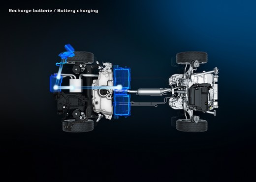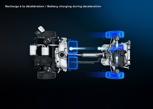 Neatkarīgi no dzinēju versijas zem aizmugures sēdekļiem ir novietots augstsprieguma litija akumulators ar kapacitāti 11,8 KWh HYBRID dzinējam un 13,2 KWh – HYBRID4 dzinējam. Saskaņā ar WLTP testa metodes rezultātiem ar akumulatoru var nobraukt līdz 50 kilometriem (60 kilometri saskaņā ar NEDC testa metodes rezultātiem). Lai dzinējs darbotos iespējami klusāk, noklusējot iestatīts nulles emisijas elektromotora režīms, ja to atļauj akumulatora uzlādēšanas līmenis. Pirms darbu pārņem benzīna dzinējs, ar elektromotoru var attīstīt ātrumu līdz 135 km/h.