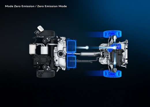 HYBRID4 dzinējs ātrumu 100 km stundā attīsta 6,5 sekundēs. Četru riteņu piedziņas režīmā būs patīkamāk braukt pa laukiem un pa dubļainu, apsnigušu vai līkumotu lielceļu. 300 Zs dzinēja CO2 izmešu rādītāji ir vieni no labākajiem automobiļu tirgū, pēc WLTP testa rezultātiem nepārsniedzot 49 gramus uz kilometru. Tikpat zems izmešu līmenis ir arī HYBRID versijai.