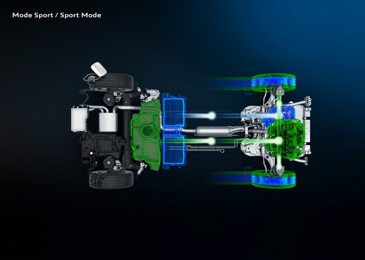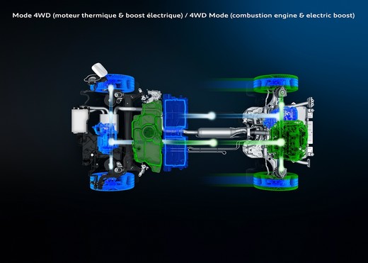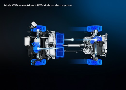 HYBRID4 versijām aizmugurējā daudzsviru piekare ir integrēta ar 110 Zs / 80 kW elektrodzinēju. Aizmugurējā piedziņa neietekmē automobiļa vadīšanas īpašības un bagāžas nodalījuma izmantošanu.