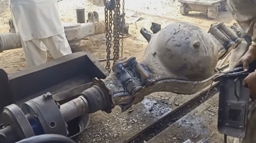 Pakistānā meistari salabo aizmugures asi, kurai ieplīsis korpuss. Diena galā, taču šoferis var doties tālāk.