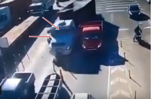 Kravas auto bez bremzēm tuvojas maksas terminālim un... (+ VIDEO)