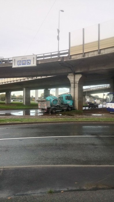 Kravas auto iebrauc tilta balstā; CSN dēļ nekursē 3., 7. un 9.maršruta tramvaji
