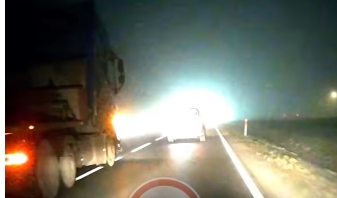 Video autors apgalvo, ka miglas dēļ vairākas vieglās automašīnas braukušas piesardzīgāk, kas izraisījis kravas auto šofera niknuma izpausmi, ko tas apliecinājis mirkšķinot sava auto gaismas, taurējot un arī riskanti apdzenot.