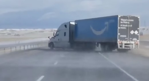 Kolorado-Vaiomingas štatu robežas tuvumā 1.janvārī pūta tik stiprs vējš, ka Amazon preču piegādātājs nenoturās uz ceļa.