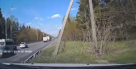 Video autors raksta, ka kravas auto piespiedis viņu nobraukt no ceļa un tikai laimīgas sagadīšanās pēc viņam ar ģimeni izdevies izglābties no lielas nelaimes (no 1:35).