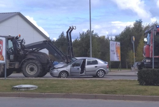 Aculiecinieka iesūtītajā fotouzņēmumā no notikuma vietas redzams, ka traktors, kas ir komplektēts ar pacelšanas mehānismu, sadūries ar vieglo automašīnu un ar masīvajiem "ragiem" daļēji iedūries vējstiklā.