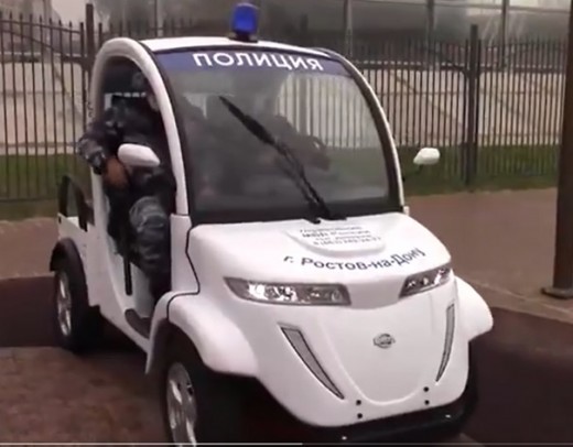 Rostovas pie Donas policijas autoparks papildināts ar diviem elektriskās piedziņas transportlīdzekļiem, kas tiks izmantoti patrulēšanai pilsētas parkos. Divvietīgajam patruļauto nav durvju, citādi diviem likumsargiem tajā īsti nebūtu vietas, toties ir vējstikls ar logu tīrītāju un uzrakstu “Policija” tā augšpusē, neliela kravas kaste un policijas bākugunis.