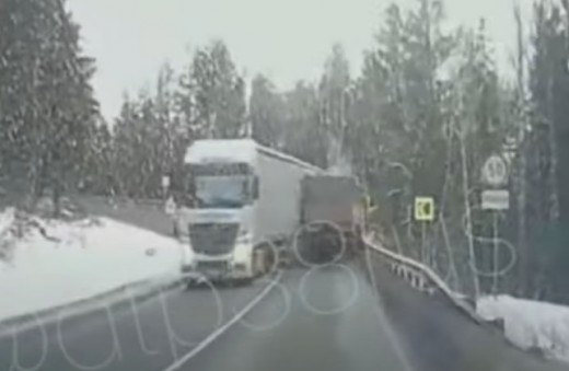 Labi, ka bez upuriem - piekabe ieslīd pretējā joslā (+ VIDEO)