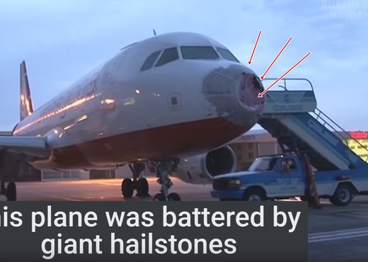 Lidmašīnas degunu sakapā milzu krusas graudi (+ video)