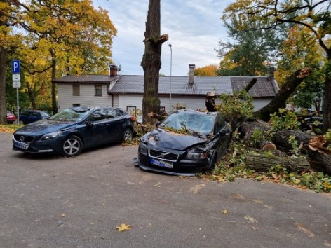 Šodien, 6.oktobrī, lielais vējš, kas lauza zarus un gāza kokus, nodarīja lielus zaudējumus diviem vieglajiem Volvo, kas bija atstāti stāvvietā.