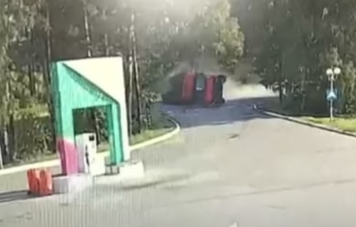 Lada Granta vadītājs ar savu spēkratu iebrauc pretējā joslā un saskrienas ar Renault kravinieku, kas cenšoties izvairīties griež sāņus. Diemžēl situācija kļūst vēl ļaunāka - smagsvars apgāžas un krava aprok Lada ar visu vadītāju.