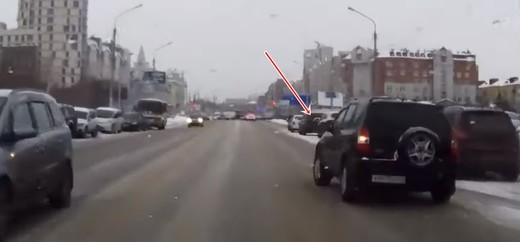 Krosovera vadītājs parāda labo pagriezienu, tad maina lēmumu un aizšķērso ceļu filmētājam.