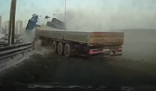 Kravas auto šoferis par vēlu pamana malējā joslā, acīmredzot kāda defekta dēļ apstājušos Gazeļ.
