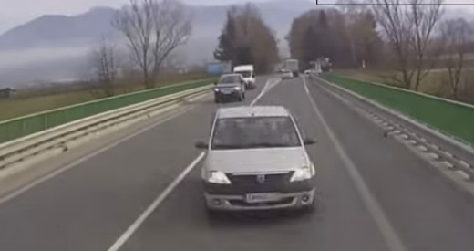 Vieglais automobilis pārbrauc ass līniju un frontālā triecienā taranē pretimbraucošo kravinieku. Video komentārā teikts, ka Dacia vadītājs aizmidzis pie stūres.