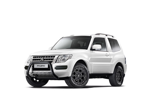 Trīsdurvju Pajero pamatā ir modeļa bāzes versija. Automobilis aprīkots ar 18 collu Offroad riteņu diskiem un riepām, stūres iekārtas, piekares un transmisijas elementu aizsargiem, kas izgatavoti no 4 mm alumīnija plāksnēm. Komplektā arī aizmugures ass diferenciāļa bloķētājs un lukturu mazgātāji, jumta bagāžnieks un radiatora aizsargstienis. Trīsdurvju versijas aprīkojumu papildina kruīzkontrole, divpakāpju sēdekļu apsildes sistēma, ar ādu apvilkts ātrumpārslēgs, stūre un stāvbremzes svira, LED virzienrādītāju dublieri sānu spoguļos un tonēti stikli.