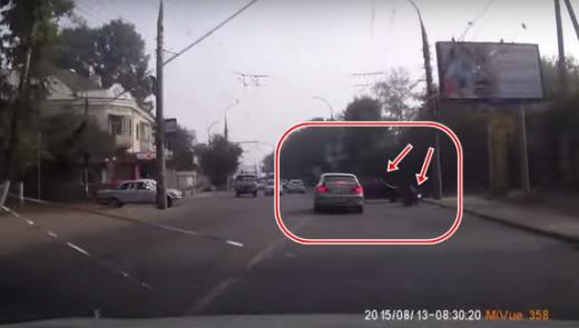 Jauna situācija, kurā var vainot gan automašīnu, kas pagriežas, gan pašu motociklistu (skatīt no 2:50).