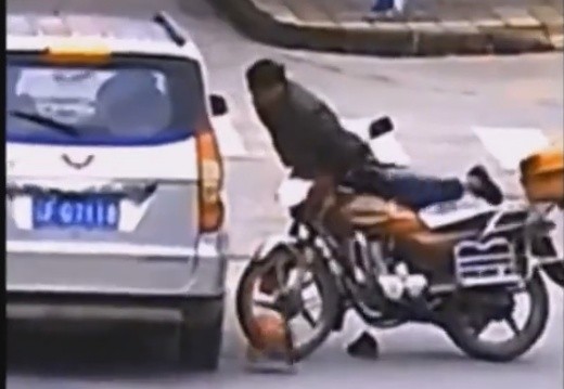 Motociklists piedzīvo sāpīgu kontaktu ar automašīnu, kas, iespējams iebrauc krustojumā pārāk dziļi.