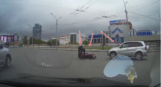 Autobraucējs, kurš uzņēmis šo video, apgalvo, ka motociklists neko nesajēdz no satiksmes noteikumiem, jo nepalaiž mašīnu, kas brauc no labās puses.