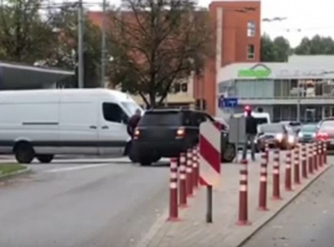 Iesūtītajā videomateriālā redzams, ka ielu nobloķējuši Land Rover Freelander un Volkswagen Krafter autovadītāji. Noprotams, ka Land Rover vadītājs vēlējies apbraukt rindu pirms krustojuma pa pretējā virziena joslu, taču busiņa vadītājs to nebija paredzējis, un izbrauca apvidus automobilim priekšā. Negadījuma rezultātā bija apgrūtināta braukšana pa Šmerļa ielu Mežciema virzienā, autovadītāji sadursmi apbrauca caur trolejbusu galapunktu. Ko šajā situācijā lems apdrošinātāji?!