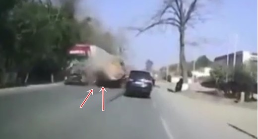 Kravas auto uzsāk apdzīšanu, taču redzot, ka nepaspēs, strauji nospiež bremzes, situāciju padarot vēl sliktāku. Tiek ziņots, ka avārijā neviens nav smagi cietis.