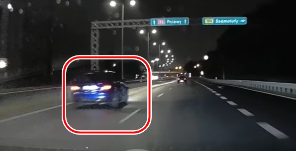 Video autors apgalvo, ka avāriju izraisījis zilā BMW vadītājs, kurš pārvietojies lielā ātrumā.