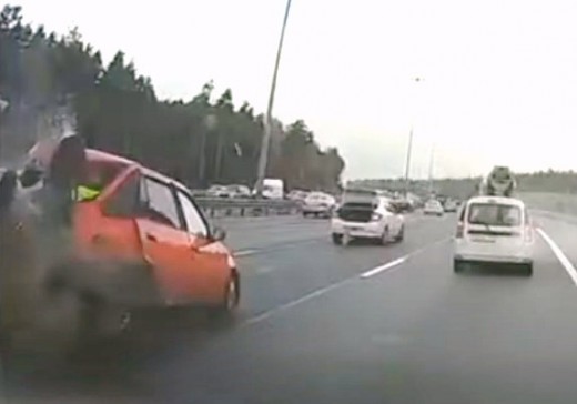 Hyundai Solaris vadītājs nepamana izlikto avārijas trijstūri ātrgaitas šosejas vidējā joslā, tādēļ turpina braukt un uztriecas diviem automobiļiem. Viens no tiem bija apstājušies tehniska defekta dēļ, otrs, iespējams, lai palīdzētu.