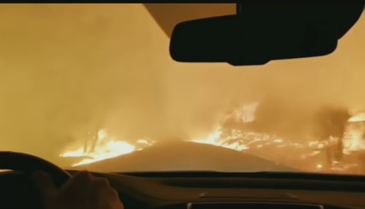 Kāds Honda Ridgeline vadītājs publicējis paša uzņemto video, kas atspoguļo bēgšanu no liesmu pārņemtās Kalifornijas (ASV) štata pilsētas Paradaizas.