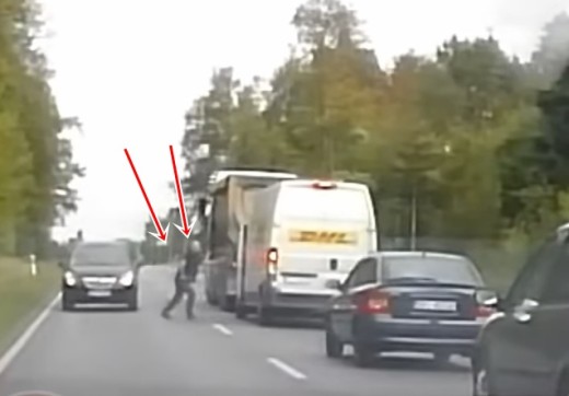 Bija pelnījis? - kravinieka šoferis metas pārmācīt "sēņotāju" (+ VIDEO)