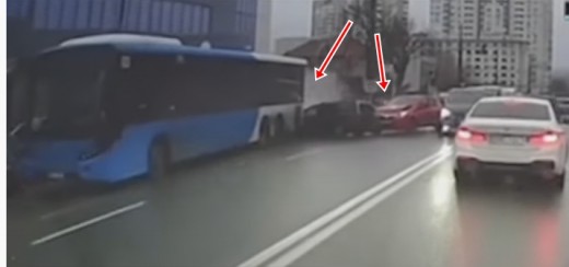 Autobuss ripo atpakaļgaitā; bojāti 10 transportlīdzekļi (+ VIDEO)