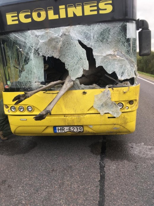 Jēkabpils novadā satiksmes autobuss saduras ar alni (+ FOTO)