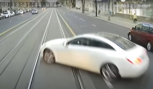 Mēģina apgriezties uz sliedēm (+ VIDEO)